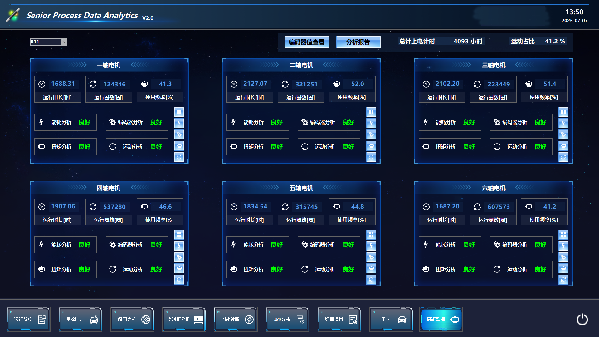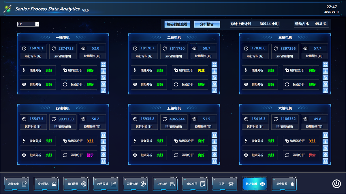 莱期针对工业/喷涂机器人的运动特征,定制特别的算法去预测包括工艺、涂装设备和机器人本体电机可能存在的问题。