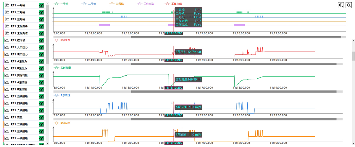 我方对主流自动化设备,机器人及传感器采用自己开发的接口进行数据采集,采集速率最高可达10ms,并依靠独有的存储方案对数据进行快速存储。